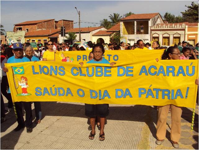 O LIONS CLUBE DE ACARAÚ SAÚDA O DIA DA PÁTRIA. O CLUBE DESFILOU APRESENTANDO O PROJETO NASCER COM DIGNIDADE E O GRUPO DE IDOSOS DO PROJETO “VIVA A 3ª IDADE”. TAMBÉM HOUVE UMA HOMENAGEM PÓSTUMA AO EX-COMPANHEIRO LEÃO MONSENHOR JOSÉ EDSON MAGALHÃES, QUE VIVEU FIELMENTE O SEU IDEAL LEONÍSTICO.